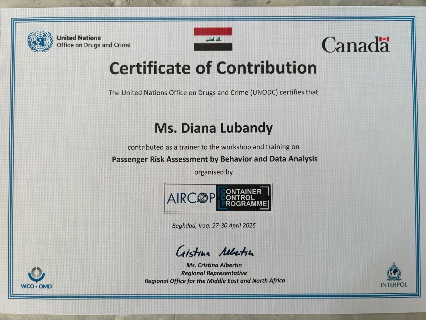 - Since 2025 – Expert trainer for the United Nations Office on Drugs and Crime – AIRCOP Programme in Middle East